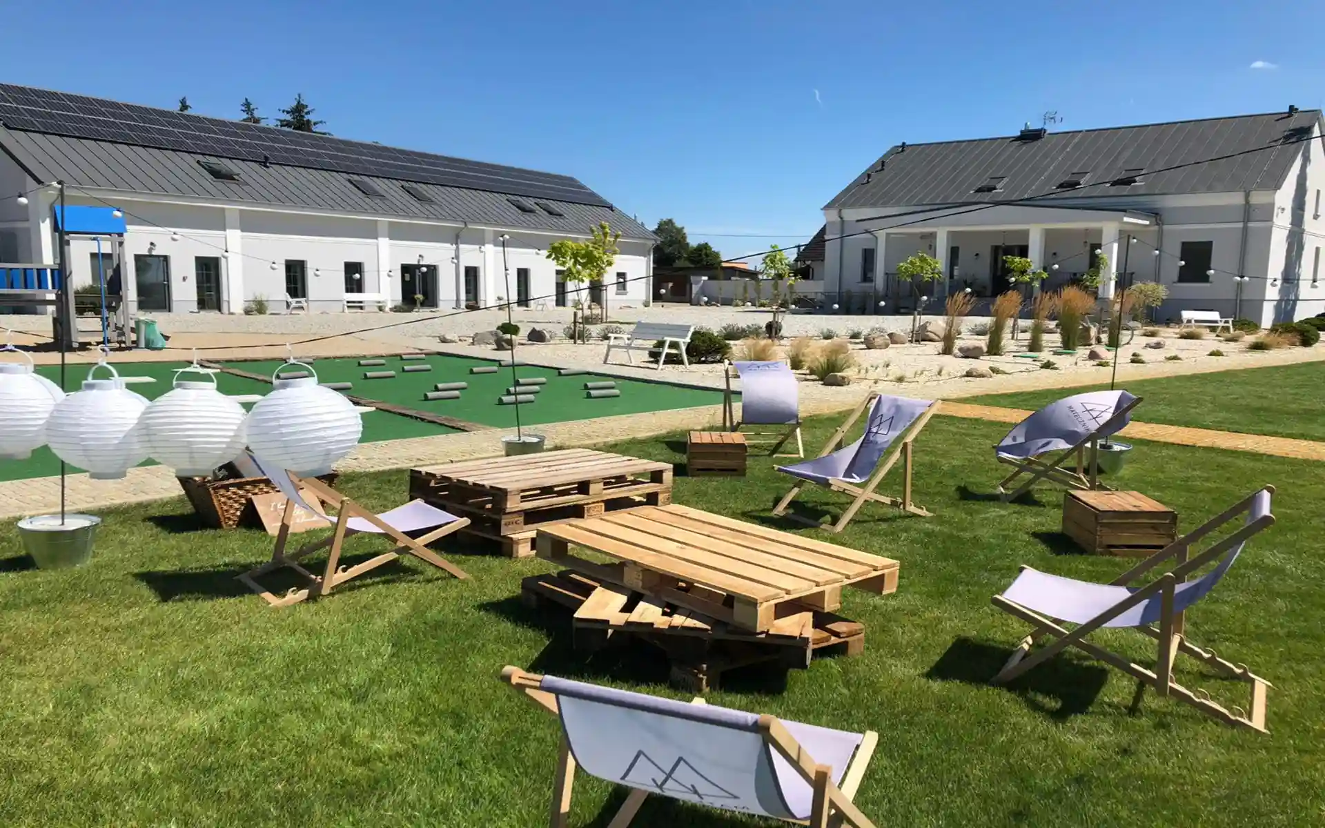 Tak, Folwark matecznik oferuje duży teren zielony, idealny do wypoczynku, integracji oraz aktywności na świeżym powietrzu. Dla dzieci dostepny jest plac zabaw, boisko trawiaste wielkości orlik, boisko piaszczyste do siatkówki, pola do mini golfa. Zachęcamy do zapoznania się z wszystkimi atrakcjami.